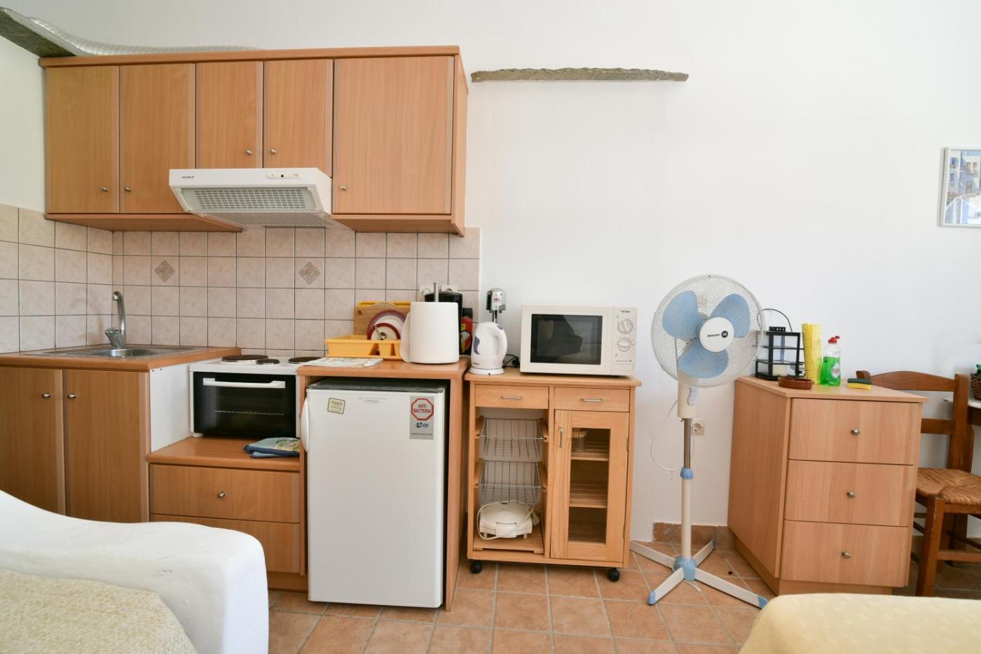 Studio. Featuring a kitchenette with dining area, this air-conditioned studio overlooks the Aegean Sea or the mountain from its balcony. It is located just 150 metres from Kionia Beach and offers: -a fridge, microwave and a small electric oven -a TV, a DVD player and a CD player -a safe -a hairdryer and free toiletries -free Wi-Fi. ;