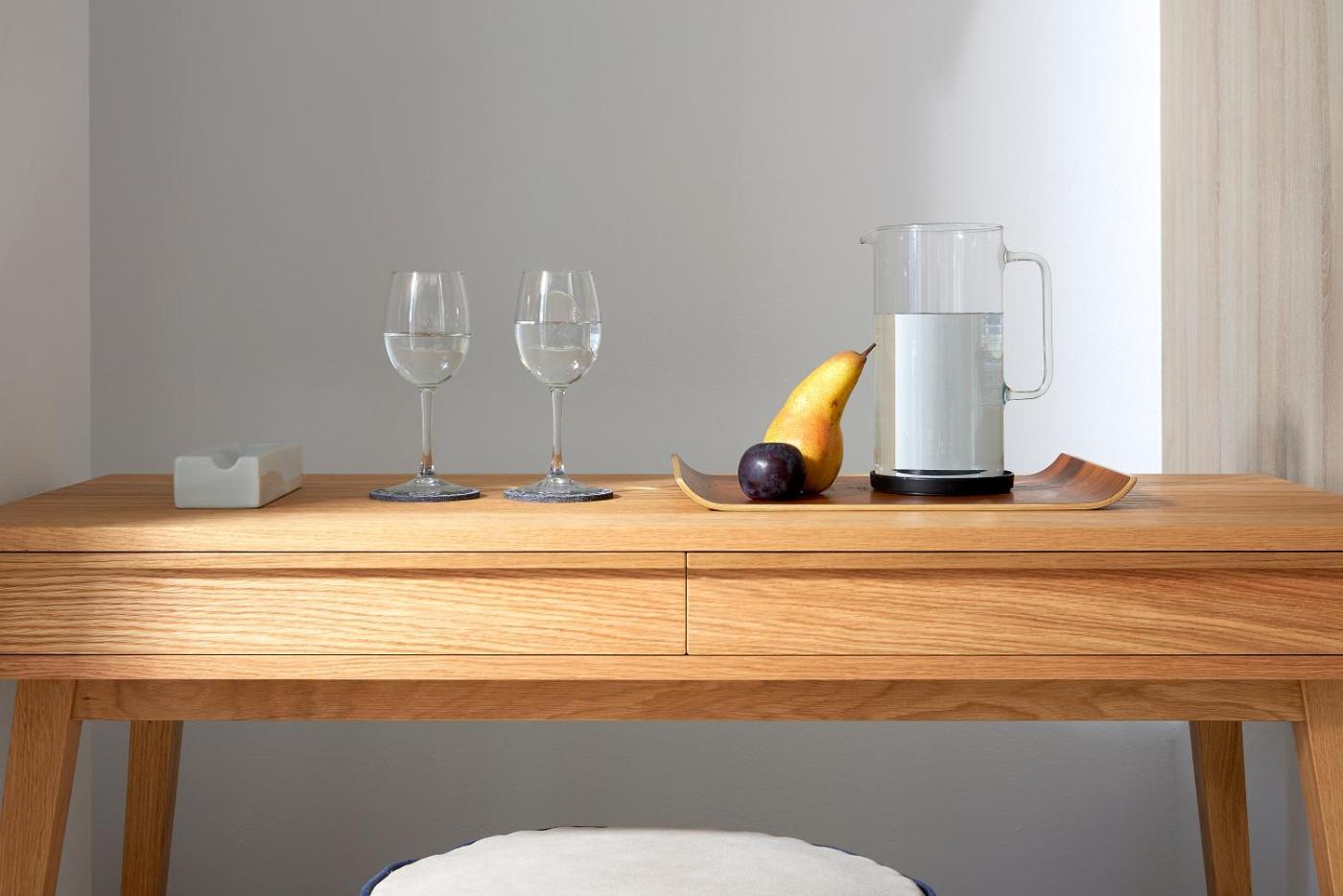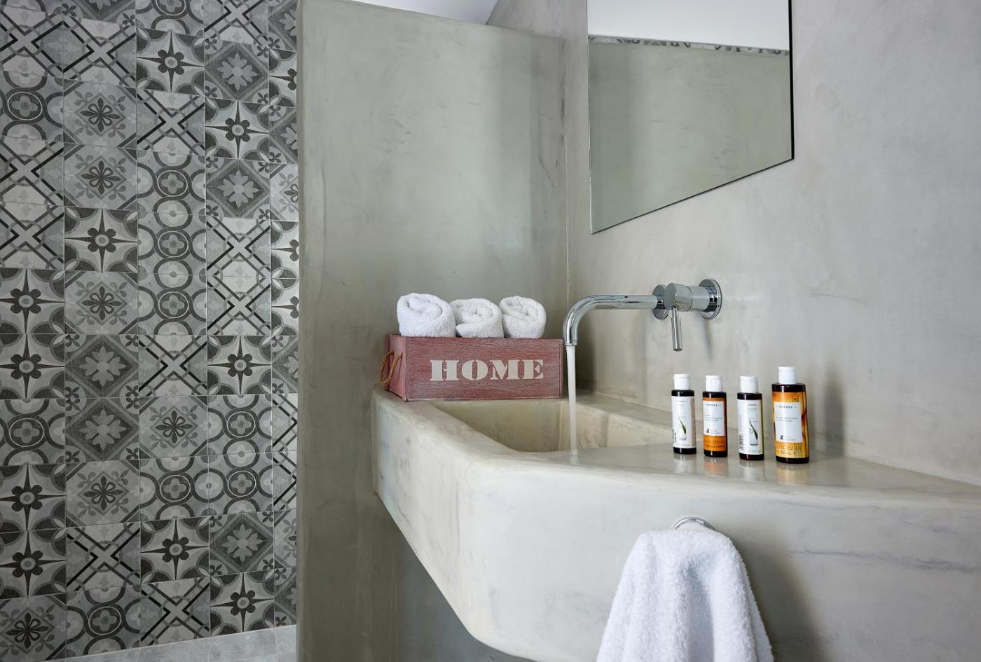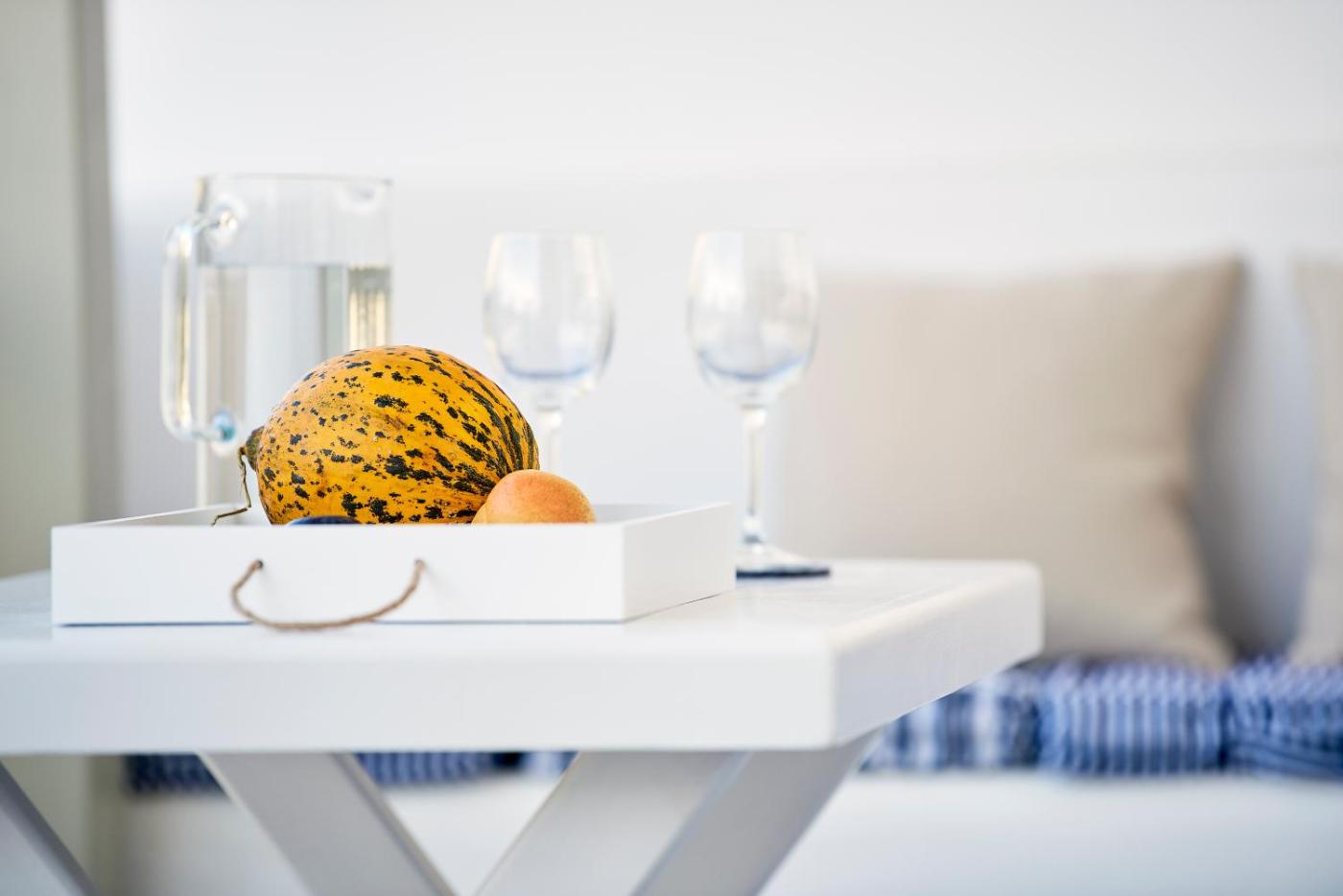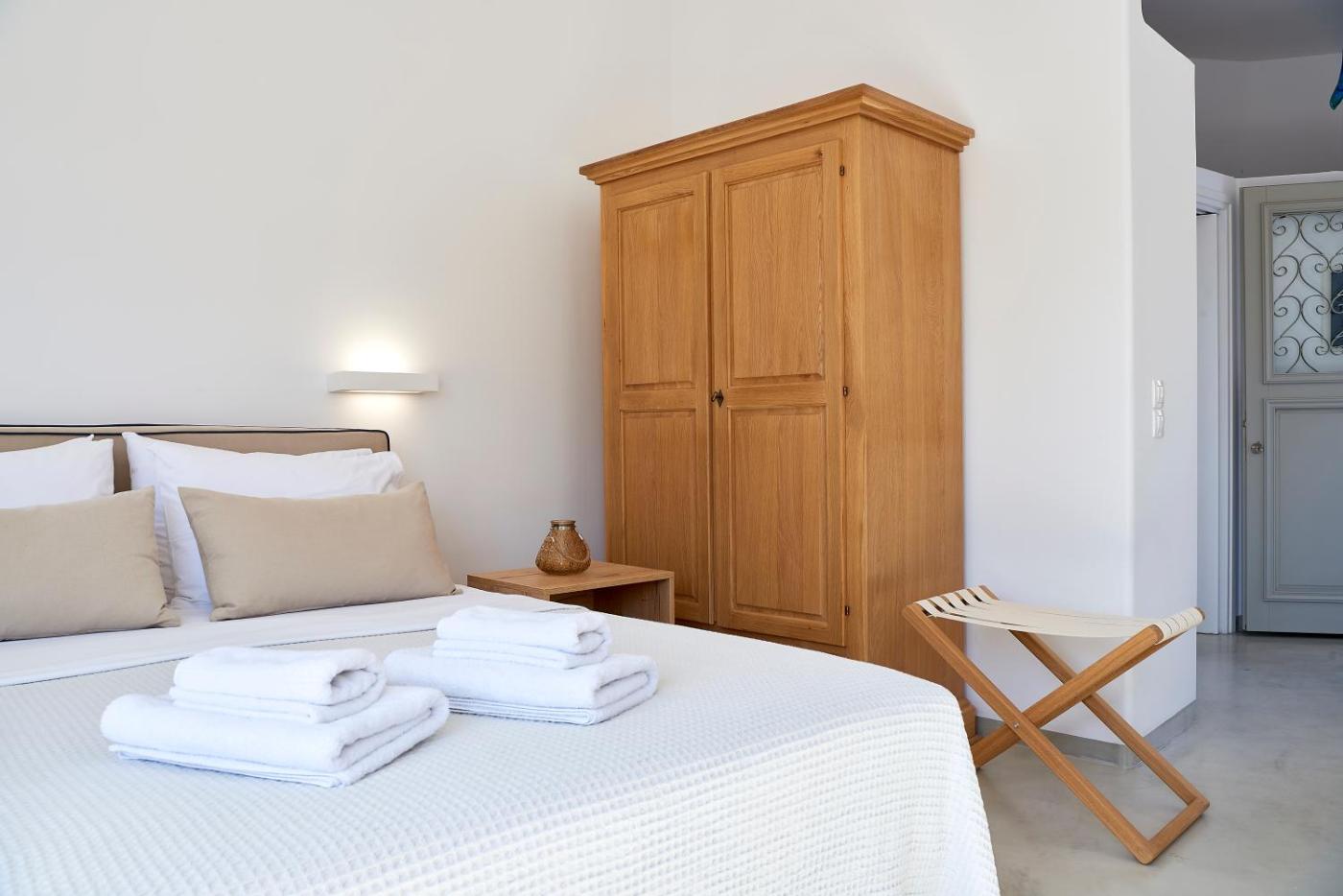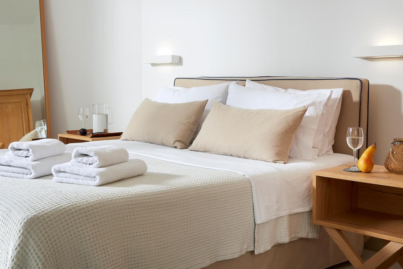 Studio Apartment. This room feature a double bed with Coco-Mat mattress and a private bathroom with shower and free Korres®toiletries. It has a sofa and a small furnished balcony, overlooking the village of Pollonia. This air-conditioned room offers free Wi-Fi, daily maid service and coffeetea facilities. This room is just 10 metres from Pollonia beach, while public parking can be found at 50 metres.